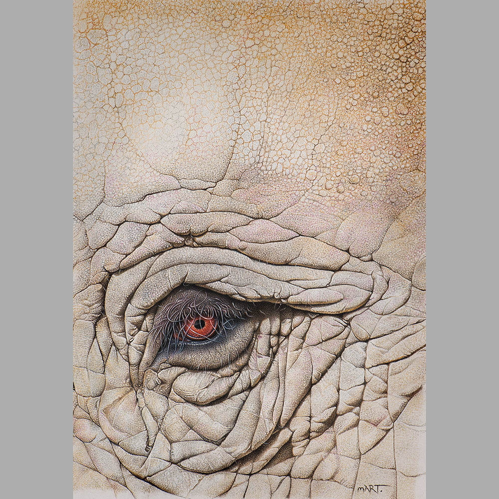 Close-up (cropped square) of an African elephant  drawing by wildlife artist, Martin Aveling